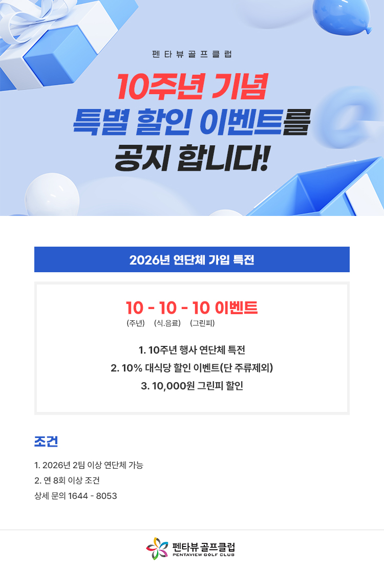 제목펜타뷰 골프클럽 10주년 기념 특별 할인 이벤트를 공지 합니다 2025-11-07
